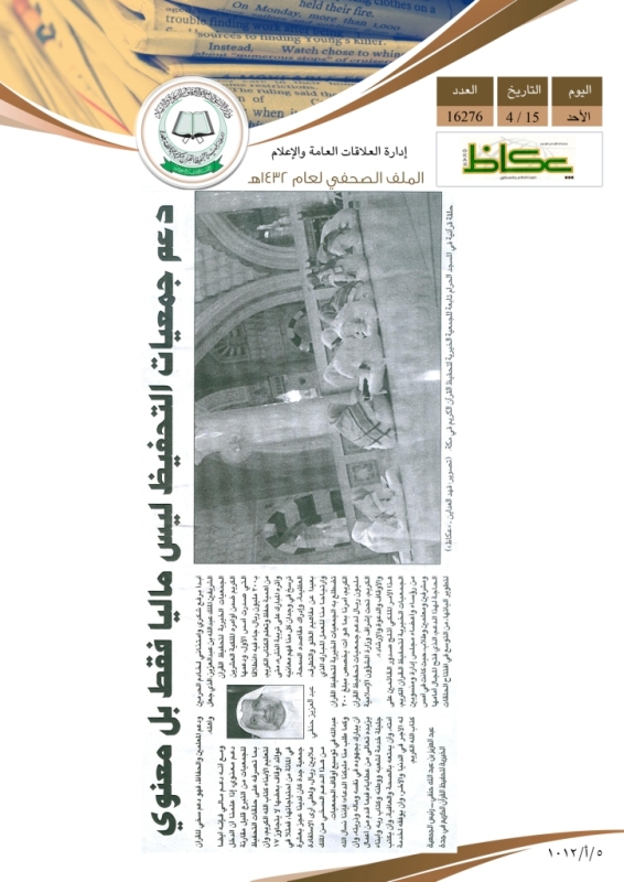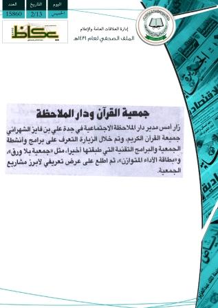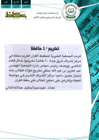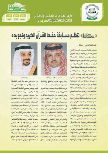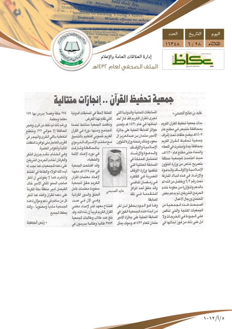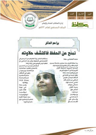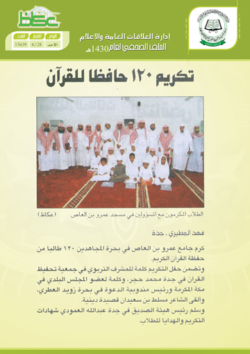 أبدأ برفع شكري وامتناني لخادم الحرمين الشريفين الملك عبدالله بن عبدالعزيز، الذي جعل الجمعيات الخيرية لتحفيظ القرآن الكريم ...